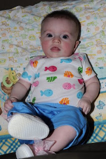 Olivia's nurse is very pleased with how she is eating and doesn't want us to try rice cereal until at least 5 months, but if she is still eating well, we'll wait until 6 months. We'll just play it by ear and see how she progresses!